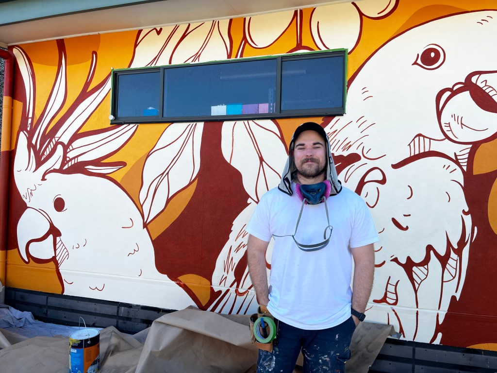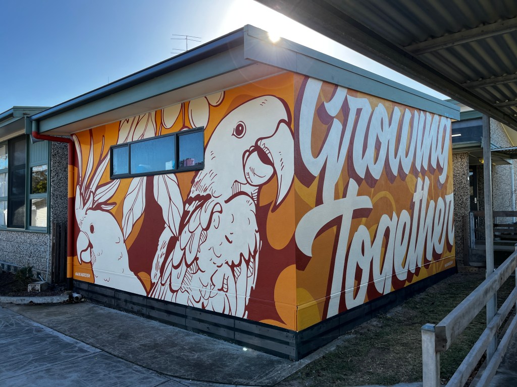 While in residence Phil worked closely with students and staff at Apsley Primary School to transform a blank wall into a vibrant celebration of local stories, nature, and imagination. His artwork now brightens the school grounds and inspires everyone who passes by.